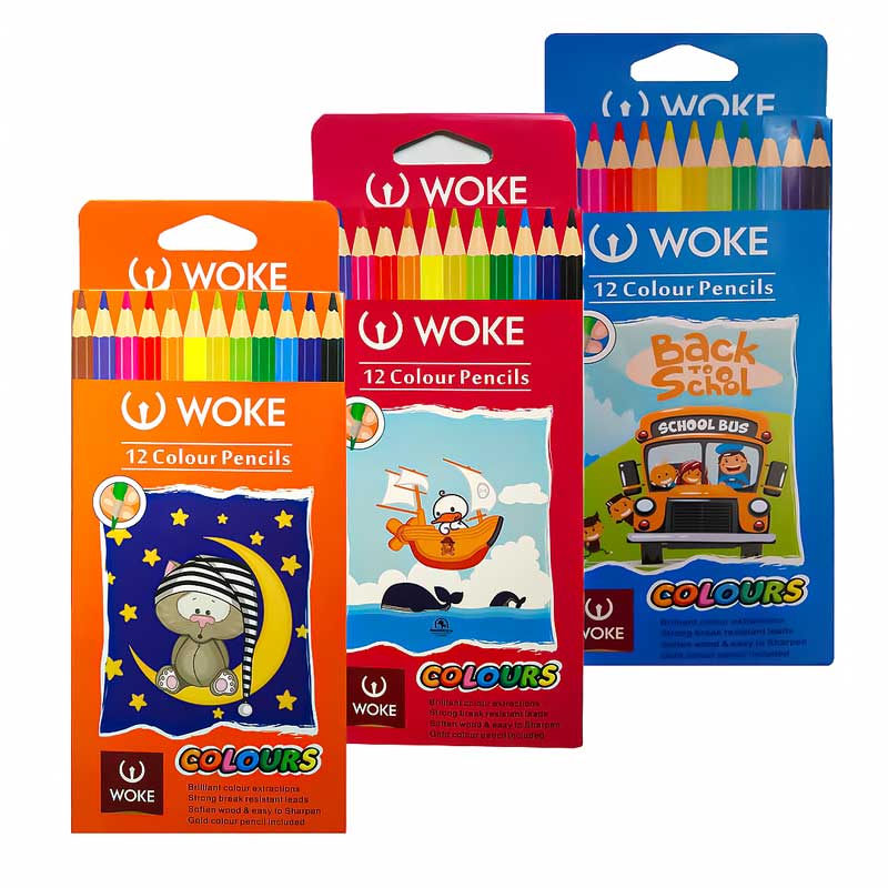 مداد رنگی ۱۲ رنگ WOKE جعبه مقوایی – رنگهای شفاف و مغز مقاوم