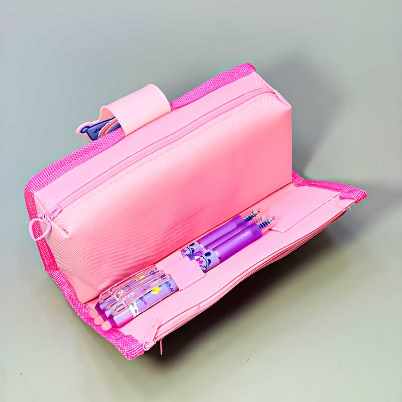 سه بخش مجزا با زیپهای مقاوم: تفکیک خودکار، مداد، پاککن، ماژیک و لوازم کوچک دیگر بهصورت منظم